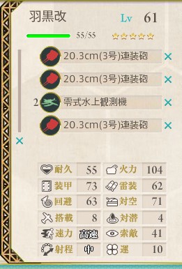 強いて言うなら中破でも夜戦でフラ戦を倒せる火力があると良いですね。