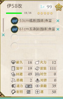 夜戦でカットインを出すために魚雷2積みなので甲標的では行けません。