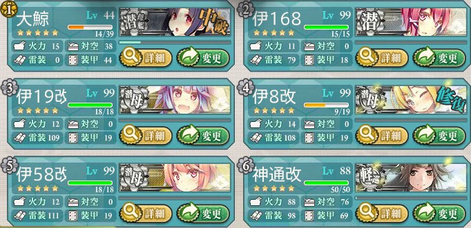 潜水艦のみの編成です。ちなみに到達のためには水上機を搭載する必要があります。