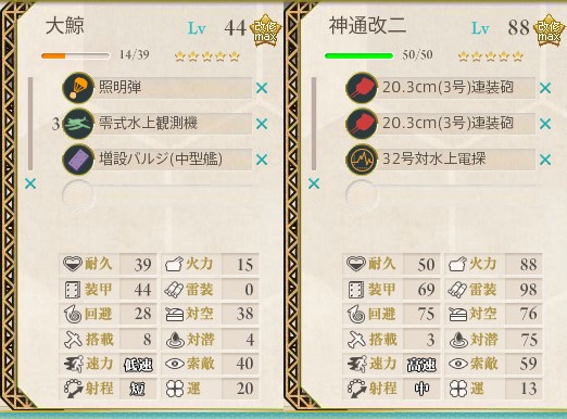 昼戦でフラヲに大ダメージを受ける展開も多いので軽巡はキラ付けした方が良いと個人的に思いました。