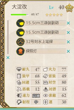 ただし大淀は雷装が低め=夜戦火力が低めです。