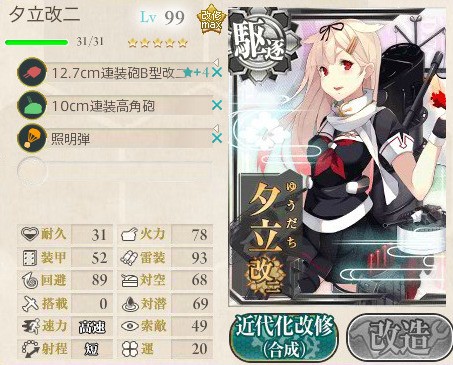 運改修済みの夕立や島風がいればまた変わってきますし、装備の改修も済んでいれば有効な艦の数も増えるでしょう。