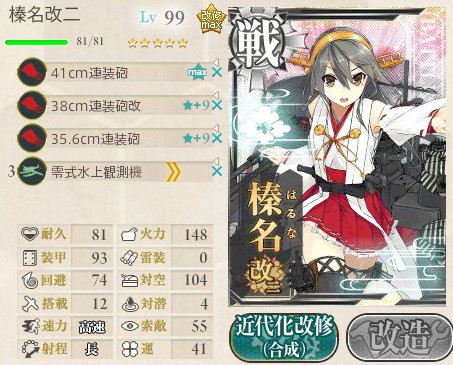 ちなみに主砲3+索敵機は昼戦連撃になります。
