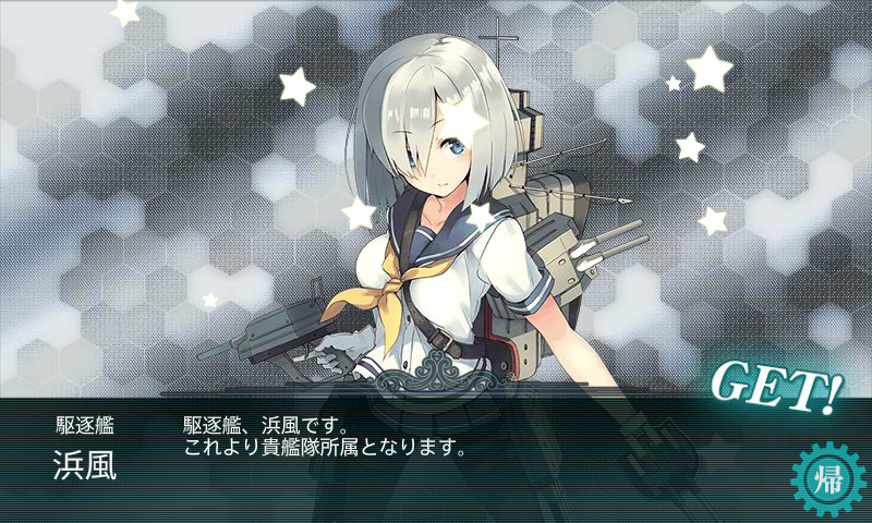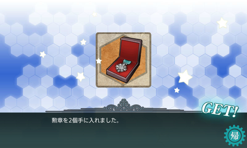 勲章2個に駆逐艦天津風を入手できます。