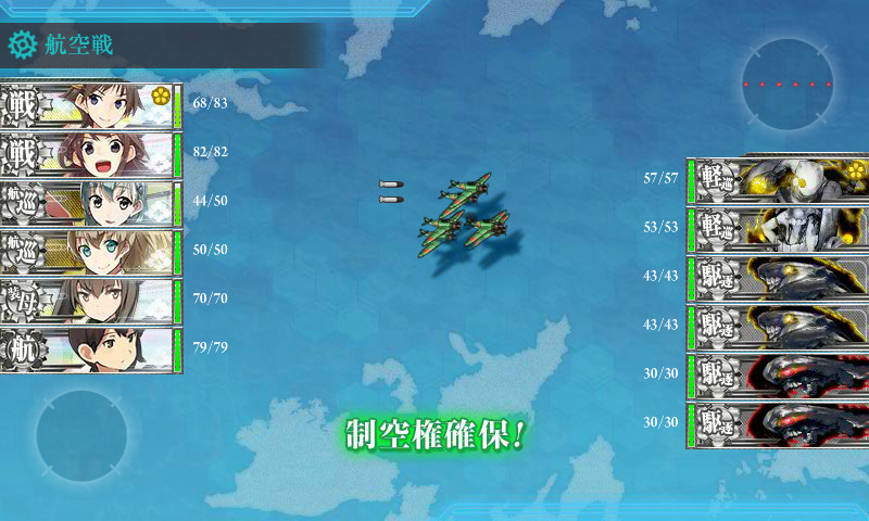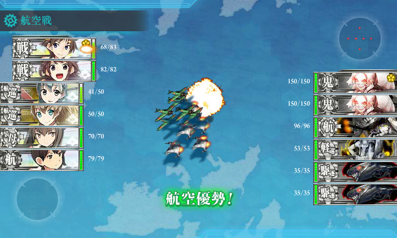 制空権は優勢までで抑える代わりに大きなスロットに流星改を搭載しています。