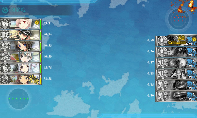 蓄積ダメージで少破や中破が数隻出ている事もありますが、大半が中破等でない限りは進軍して良いと思います。