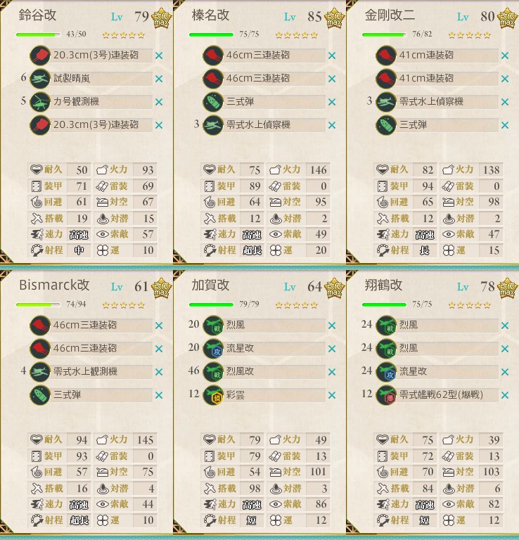 と言う訳でその辺を重視した上で艦種固定等も見据えて適当に組んでおります。