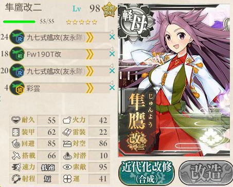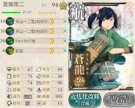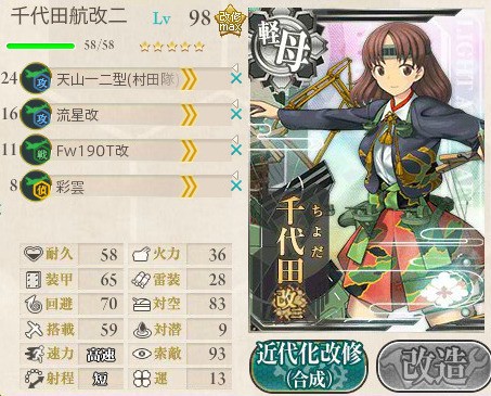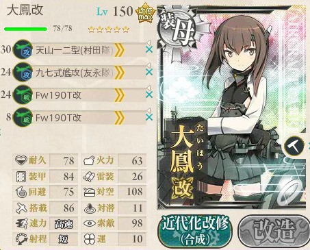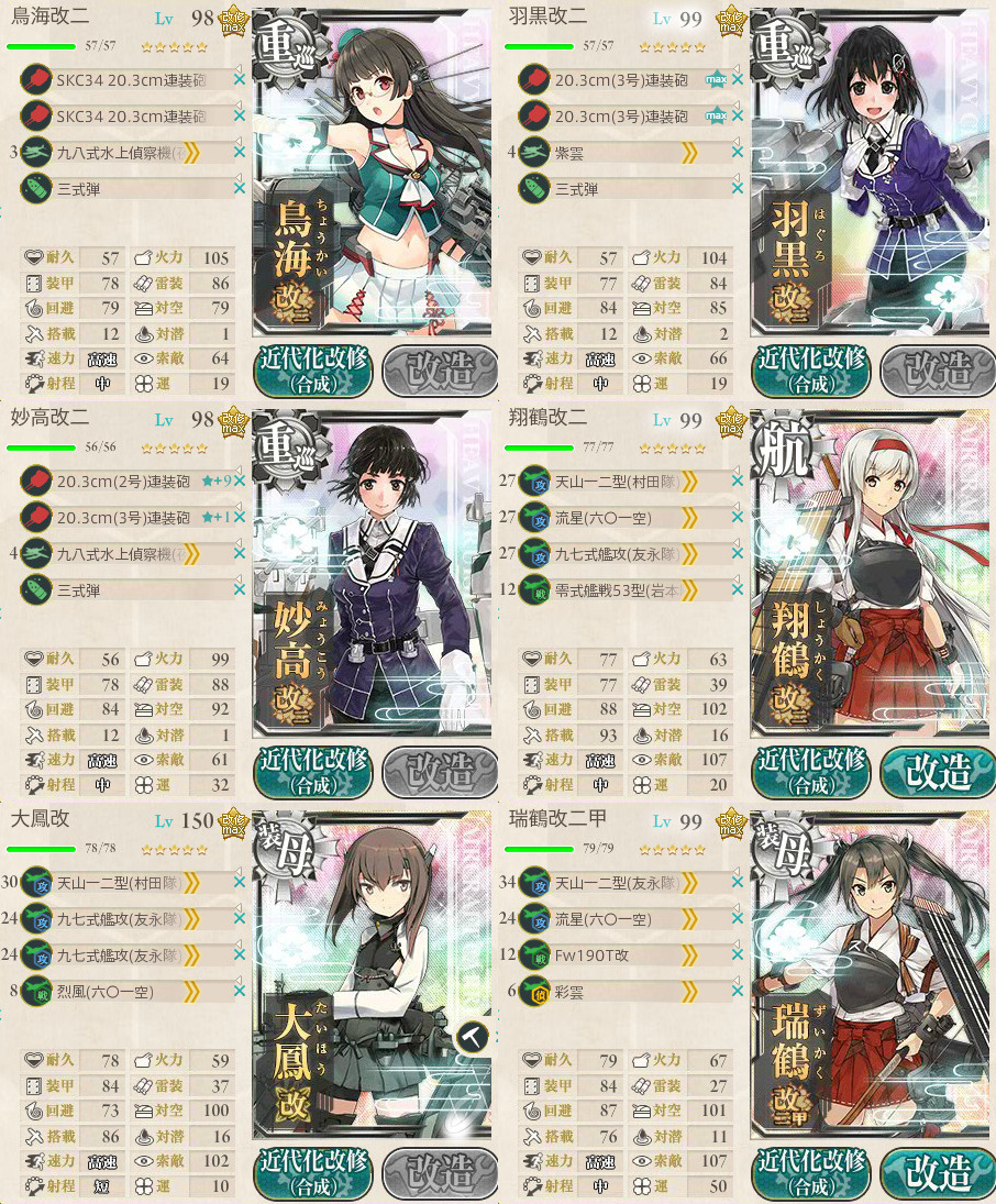 個人的には翔鶴改二、瑞鶴改二甲が一番数字的に収まりがよく美しい気がします。