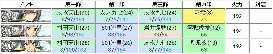 追記:最終編成用の戦5空1の記事も書きました→「4-5 最終編成を絶対に倒す戦5空1」