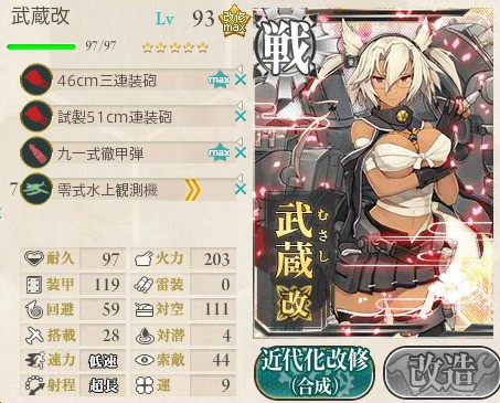 武蔵は13秋イベで入手しているのでこれにて大型艦卒業。