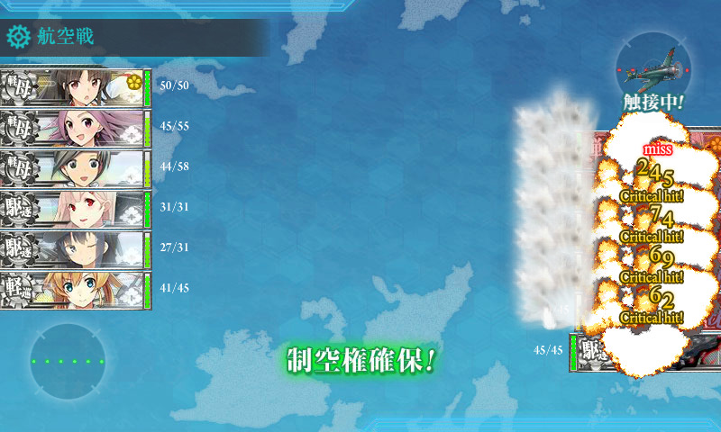 戦闘の流れとしては理想的なのは記事冒頭の画像のように開幕で殲滅、隼鷹の攻撃でフィニッシュです。