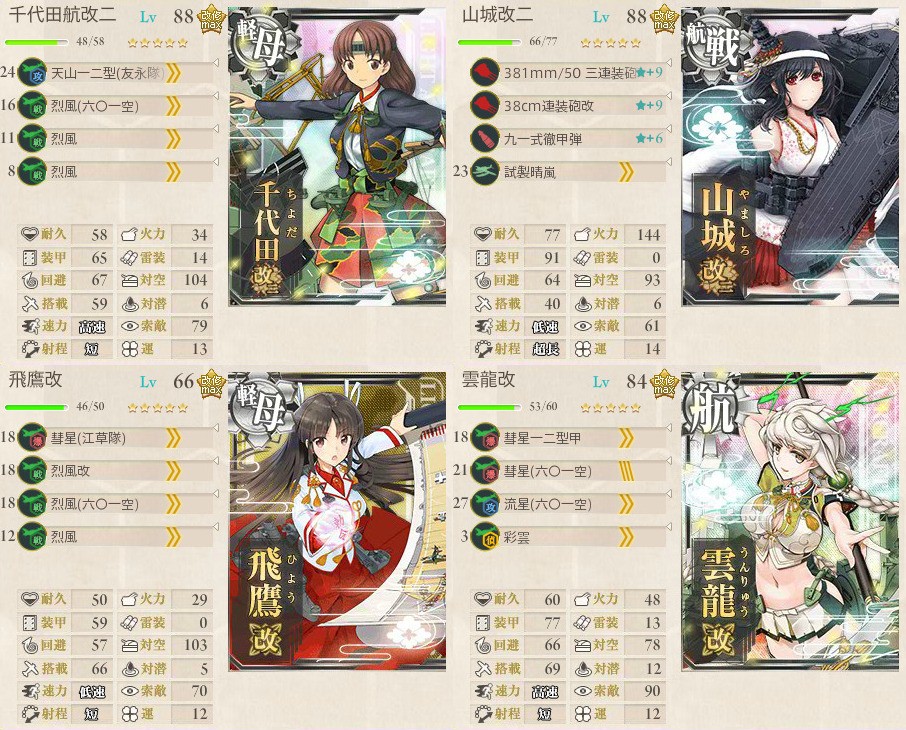 山城の枠はボスで随伴艦を処理するためなので伊勢型や金剛型でも十分です。