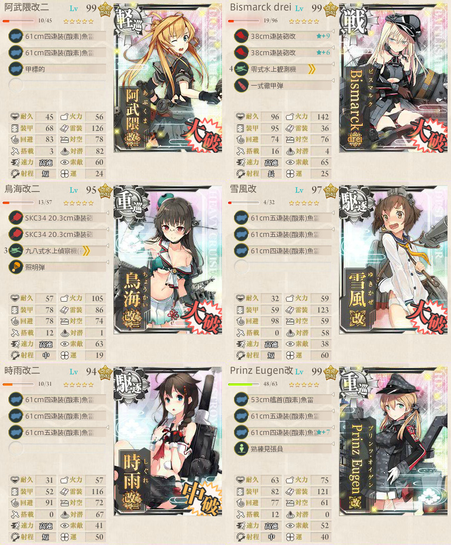 高速戦艦枠は夜戦で一番期待できるビスマルクとした。