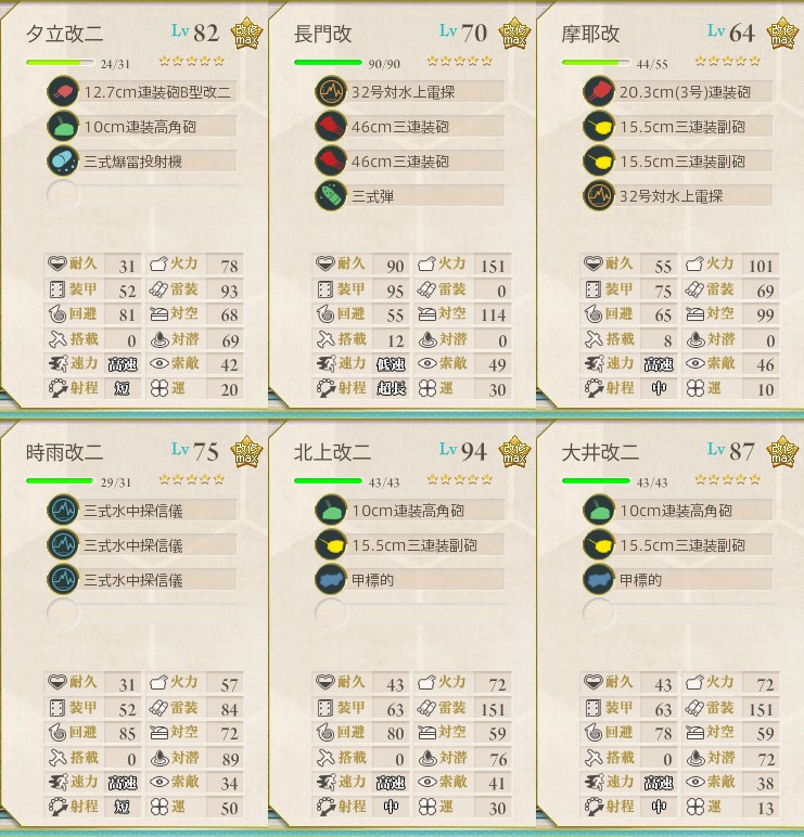 一方で潜水艦のない構成は割と堅い敵が多いので対潜陣形では安定しません。