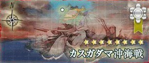 5,駆逐艦2以上を含む編成なので北西の渦潮ルートには行かず確実に鋼材をゲット出来ます