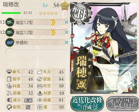 高雄改(火力77+雷装79)※★9+★9+★4愛宕改(火力77+雷装79)※★9+★4+★4